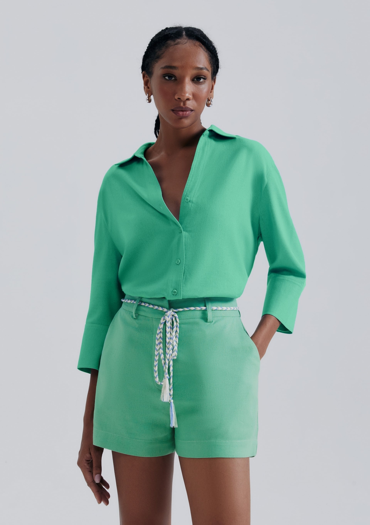 Shorts Feminino Alfaiataria Com Linho